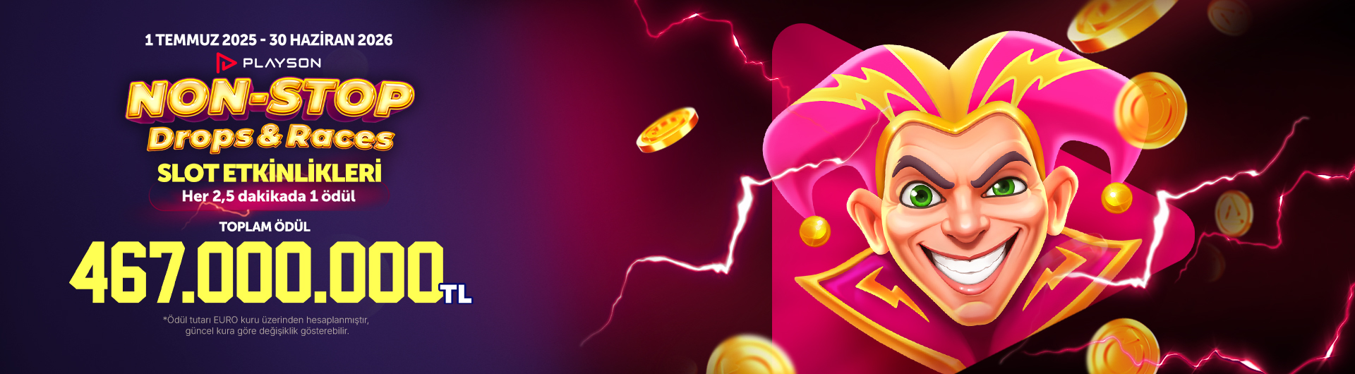 ★ Playson Non-Stop Drops & Races Slot Etkinliklerinde 1 Temmuz 2026’ya kadar her ay 3 ayrı etkinlik gerçekleştirilecektir: Ek olarak yılda 4 kez CashDays X-TREME VIP turnuvaları düzenlenecektir.