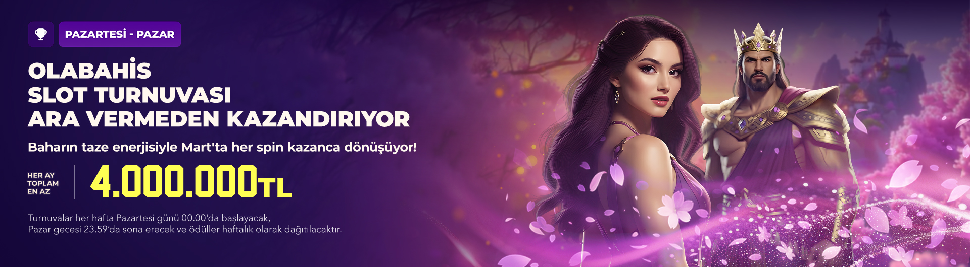 Haftalık olarak Pazartesi 00.01’de başlayıp, Pazar 23.59’da tamamlanacaktır.